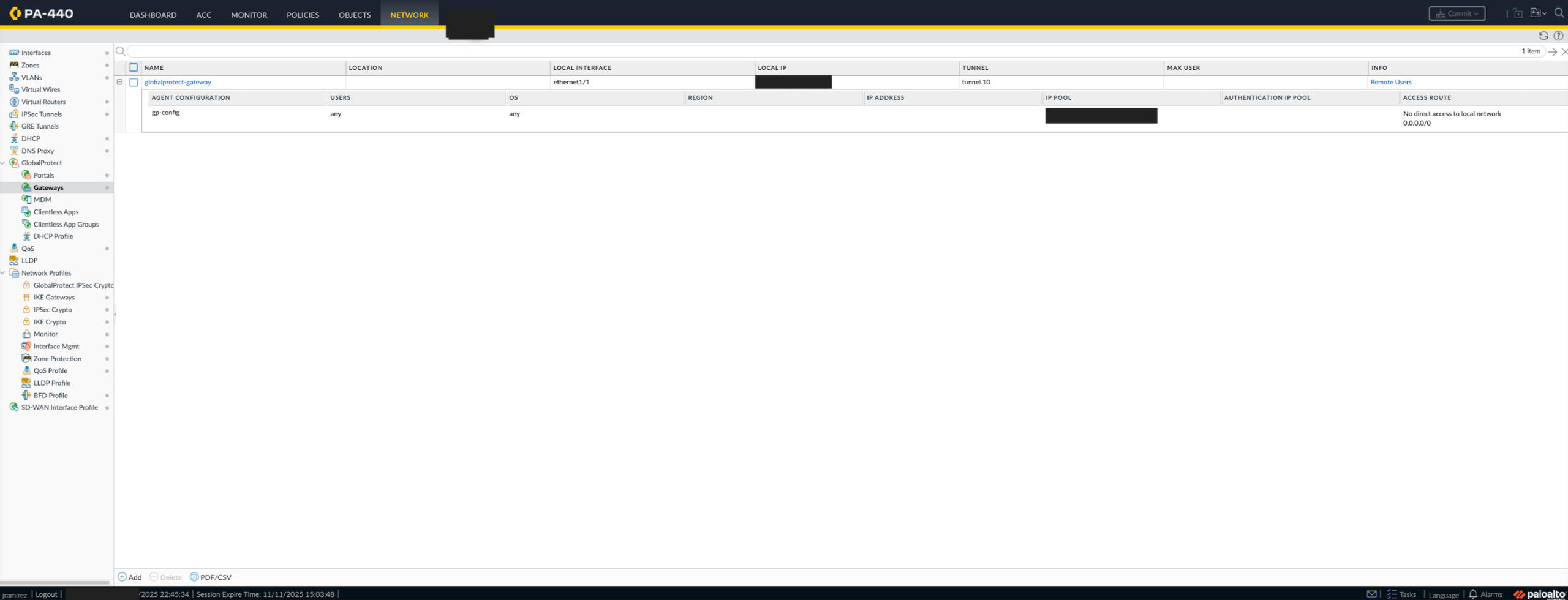 Navigated to Network → GlobalProtect → Gateways and created a gateway profile named globalprotect-gateway.